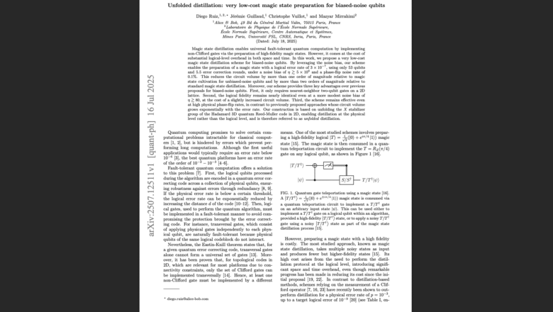 A new research paper from quantum startup Alice & Bob in collaboration with Inria unveils a technique to significantly reduce the cost of magic state generation - a crucial resource for universal fault-tolerant quantum computing. The paper, titled “Unfolded distillation: very low-cost magic state preparation for biased-noise qubits”, describes an error-correction scheme dubbed the “unfolded code” that leverages the unique…