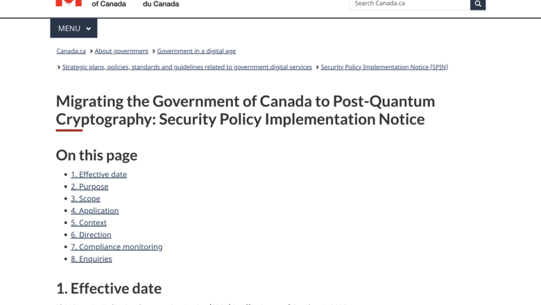 Treasury Board of Canada Secretariat has now formalized PQC migration as a measurable federal IT obligation via a Security Policy Implementation Notice (SPIN) titled “Migrating the Government of Canada to Post‑Quantum Cryptography.” It is both published and effective on October 9, 2025, and it does something the earlier PQC roadmap did not fully achieve on its own: it converts “plan to…
