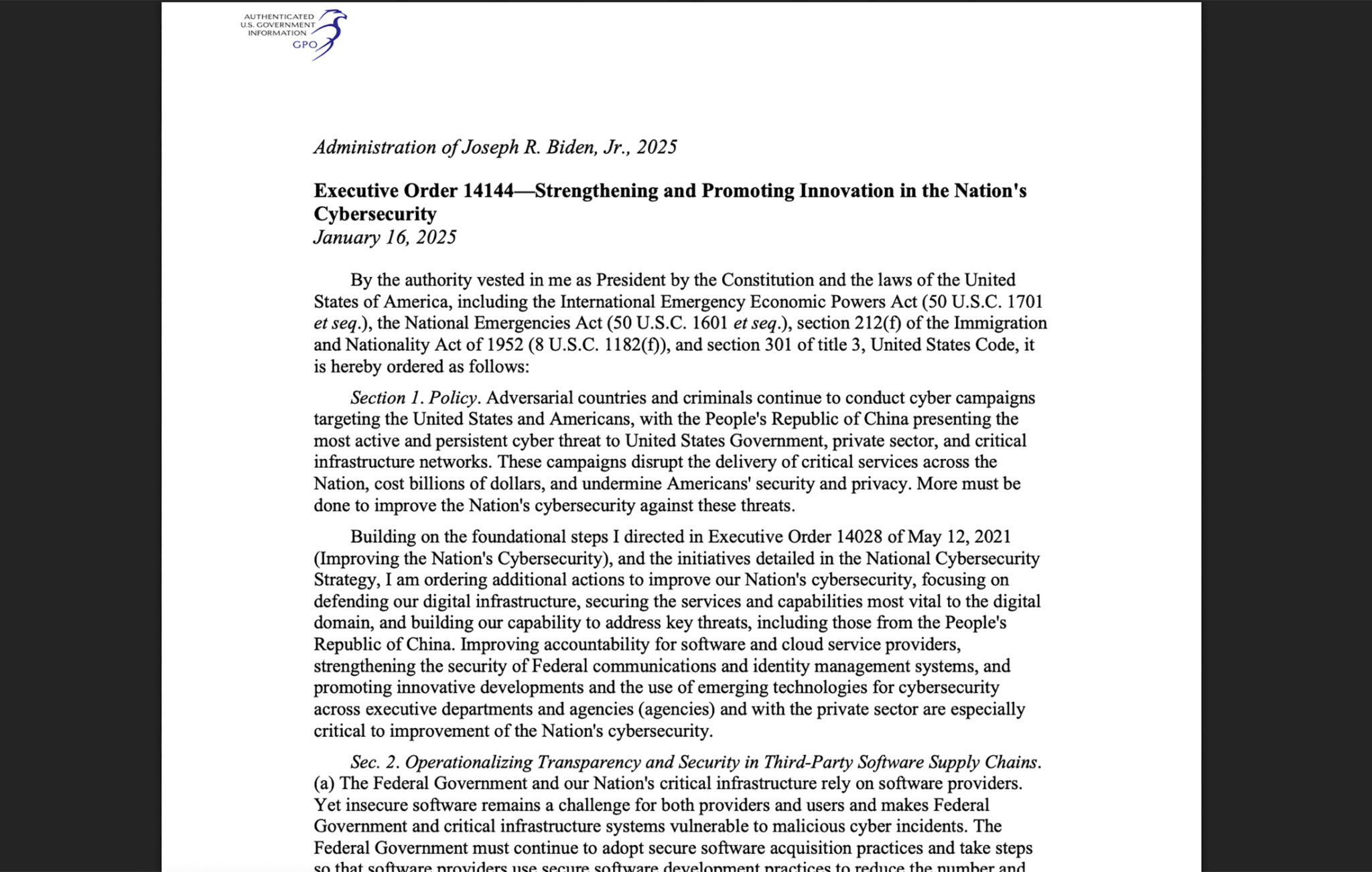 Executive Order 14144: Biden’s Big Swing at Cybersecurity Modernization