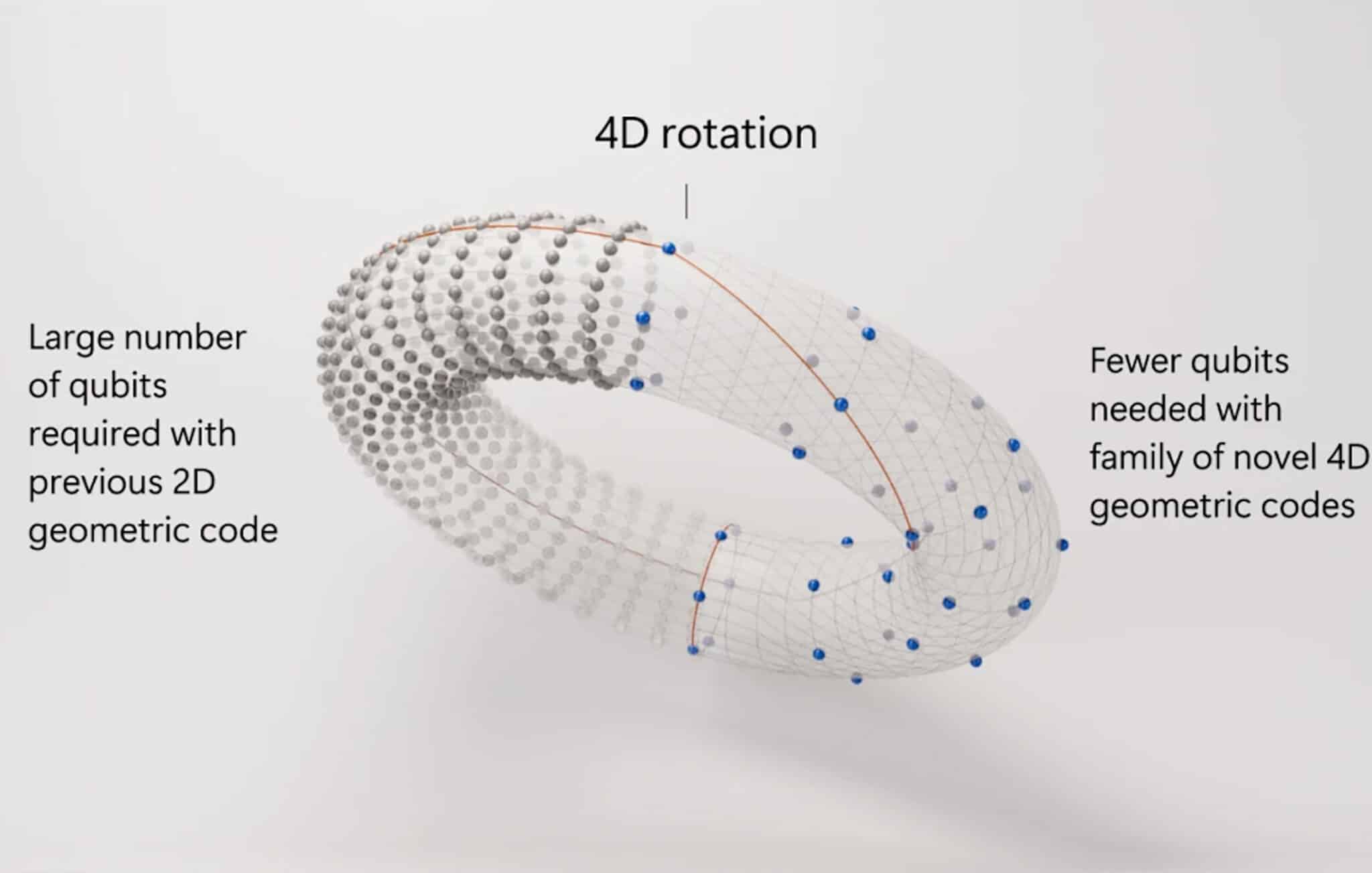 Today’s leading quantum error-correction scheme, the surface code, arranges qubits in a 2D grid with local checks, typically needing hundreds or thousands of physical qubits to encode a single “logical” qubit at useful fidelity. By contrast, Microsoft’s 4D geometric codes use a lattice in four dimensions (imagine a cube interconnected through an extra spatial dimension – essentially a 4D hypercube or tesseract structure) to pack information more densely and catch errors more efficiently. The core idea is that in a higher-dimensional topology, there are additional pathways to encode and protect quantum information. This extra geometric connectivity helps suppress correlated errors (e.g. multiple qubit errors that might sneak through a purely 2D code) and enables more robust error detection in one cycle. In simpler terms: the code “wraps” qubits in a 4D structure (like a torus extended with a twist in a fourth dimension) so that errors are less likely to spread unchecked, and any error that does occur can be identified with minimal redundancy.