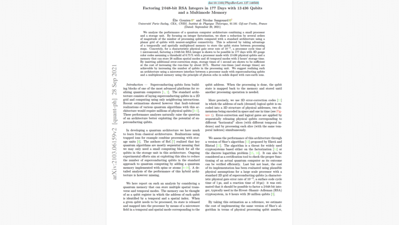 An interesting paper was published on arXiv, the preprint server. Titled “How to factor 2048 bit RSA integers in 8 hours using 20 million noisy qubits,” the paper by Craig Gidney and Martin Ekerå combines previous techniques from Shor (1994), Griffiths-Niu (1996), Zalka (2006), Fowler (2012), Ekerå-Håstad (2017), Ekerå (2017, 2018), Gidney-Fowler (2019), and Gidney (2019) to significantly reduce the…